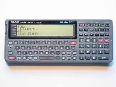 faster machines. Notably, it is 10 times as fast as the PB-2000C. Also, it turns out that the BASIC interpreter is only slightly slower than the C-interpreter. Both the C and BASIC interpreter use 13-digit BCD numbers internally. The normal calculator uses only 10 BCD-digits, though. The C and BASIC languages are available all the time whereas on the PB-2000C installing the BASIC module will completely disable the C-interpreter. At most there can be 10 different BASIC programs and 10 different C programs. However, CASL and assembler programs are stored in the C-program area so they reduce the number of available C programs. |